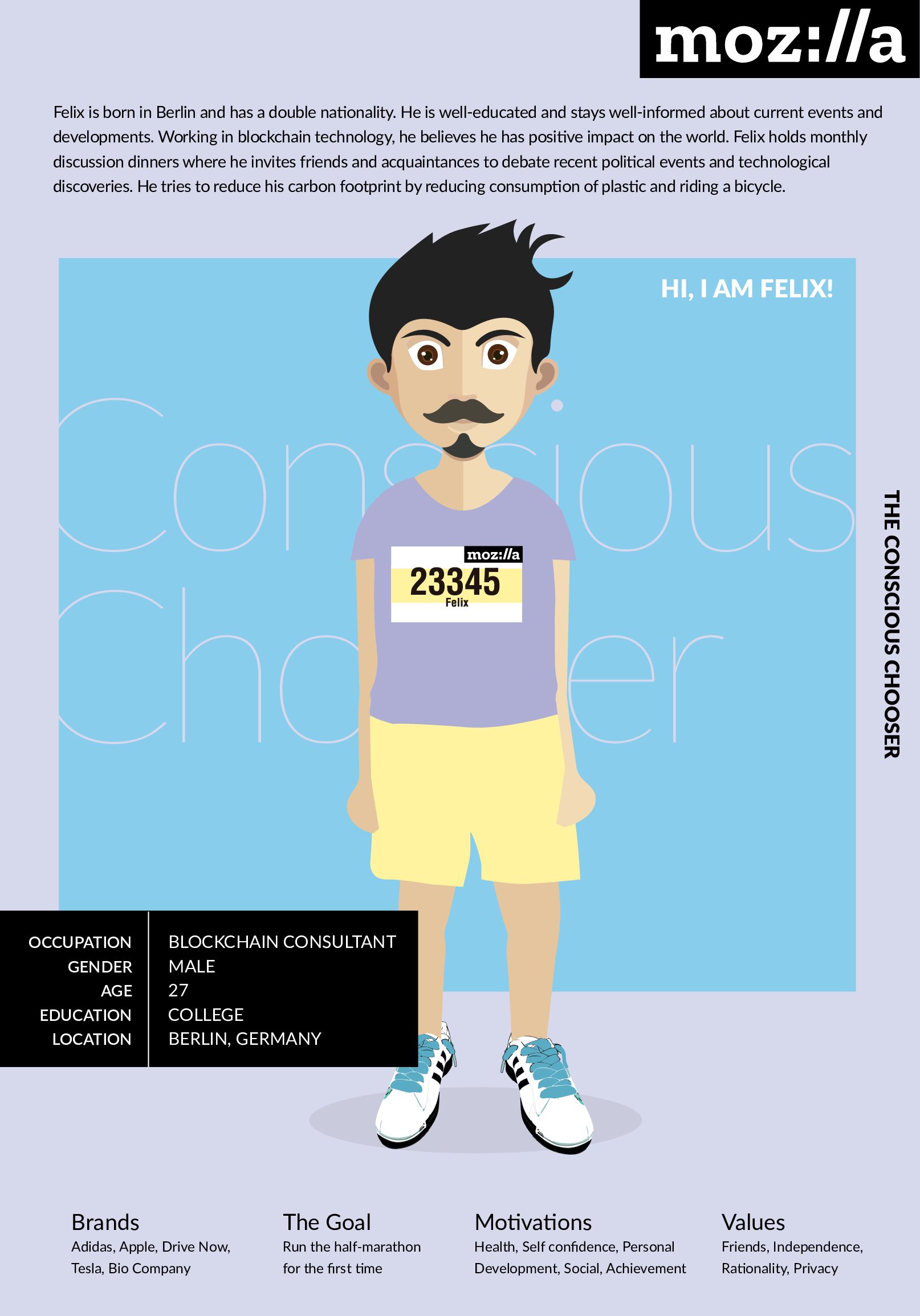 Mozilla’s target group “the conscious chooser” is present at the marathon where people strive to consciously improve their health, aim at self-improvement, compete with each other. Running a half marathon is a highly emotionally charged event – with a wide range of extreme emotions felt by the runners, from anxiety and stress, to mental and physical exhaustion, to euphoria.