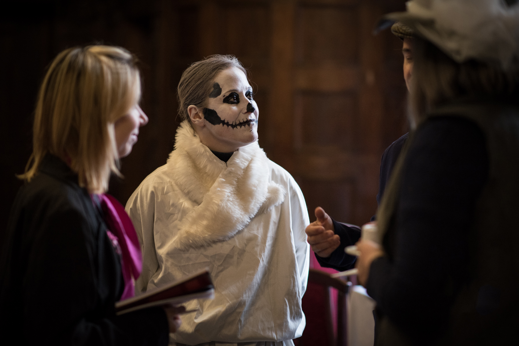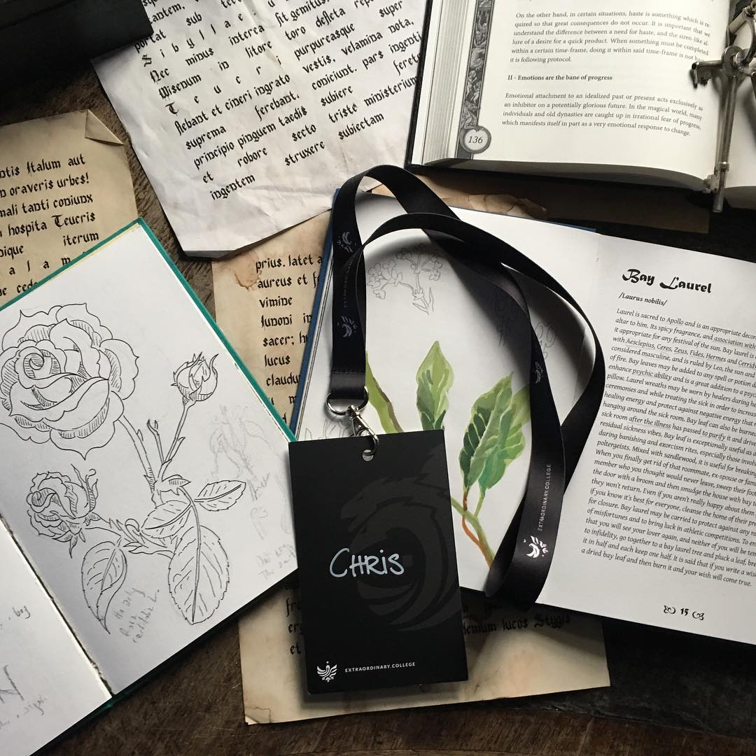 We had the idea to create some cards, to serve as Artefacts with unique quotes and inspiration from the teachers of the college. These cards can only be found in the castle during the event. We had 4 editions since 2016, and 4 collections of 100 different cards.